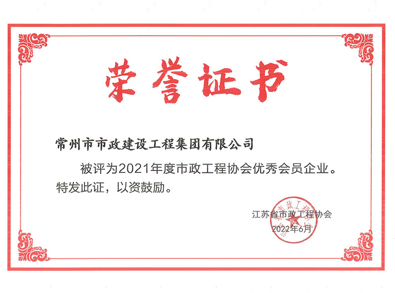 集團被評為2021年度市政工程協(xié)會優(yōu)秀會員企業(yè)